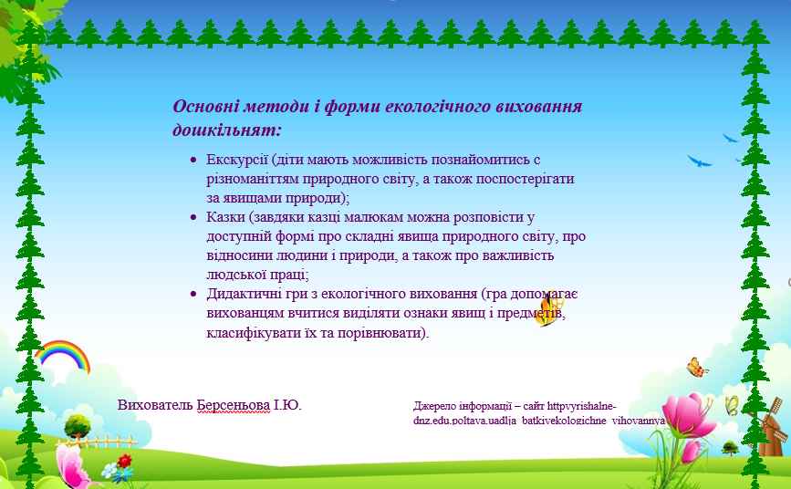 Над якою темою працює: «Екологічне виховання дітей дошкільного віку».